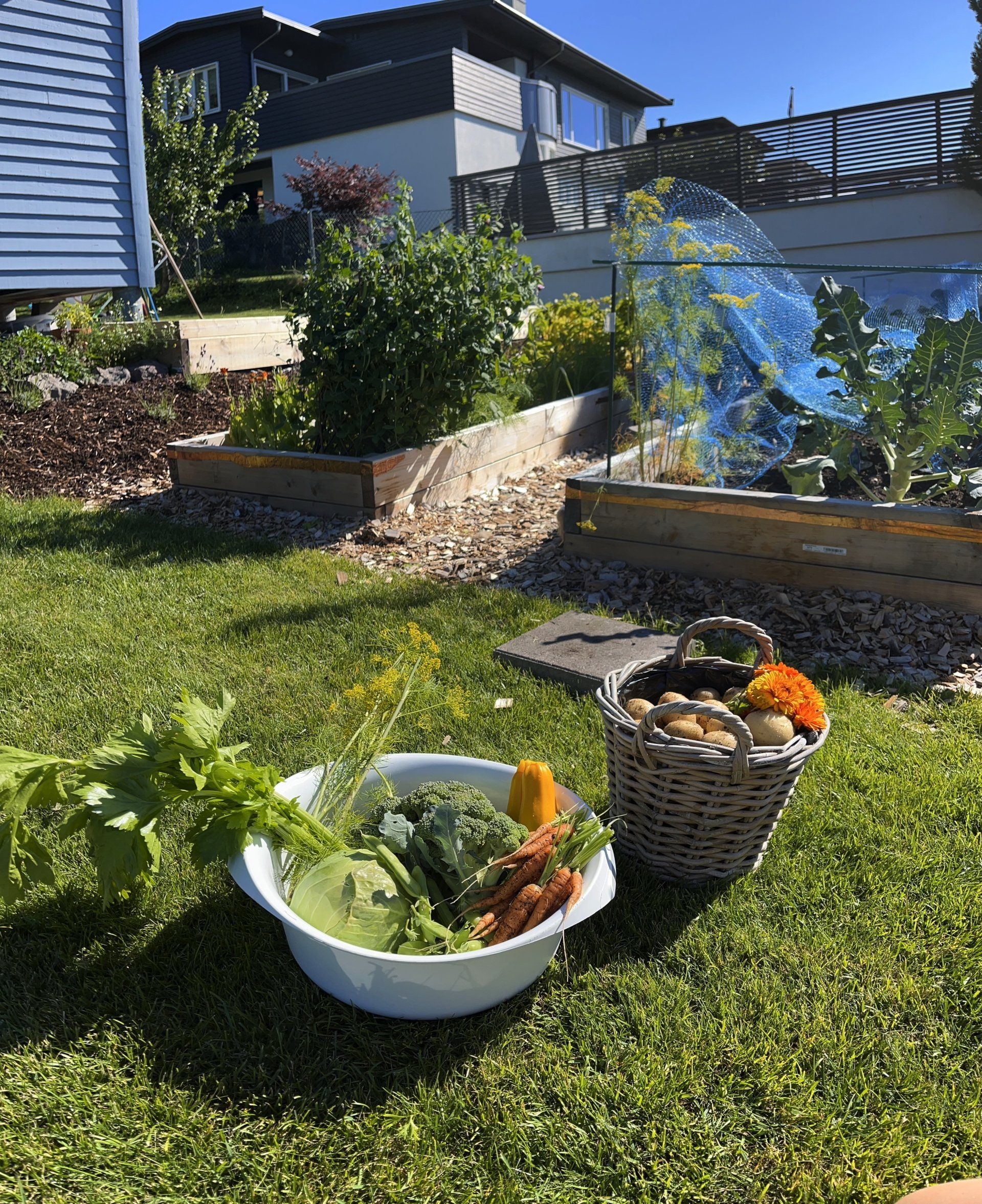 Vi liker tanken på å produsere noe av det vi dyrker. Vi har selvfølgelig laget mat av alle grønnsaker, det meste ble spist etter hvert som det ble modent, men noe er også lagret for vinteren.
